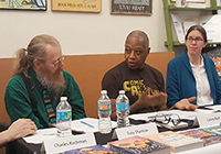 Kids' publishing folks, comic book enthusiasts, and members of the Children's Book Council gathered at the CBC's Manhattan headquarters on November 4, for a panel discussion on the changing market for children's comics and graphic novels. The speakers were Gina Gagliano, publicist, First Second Books; Terence Irvins, assistant manager, comics and graphic novels buyer, Kinokuniya Bookstores of America Co.; Charles Kochman, editorial director, Abrams; and Tony Shenton, freelance sales professional. Calvin Reid, senior news editor at PW, moderated the conversation. more
