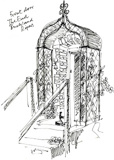 Friends live in this portion of a mid-eighteenth century manor house in Dorset, England. I chose to sketch it through a profusion of garden growth because that's the atmosphere of the place: quiet, dignified and nestled in verdant garden at the end of a wooded country lane.