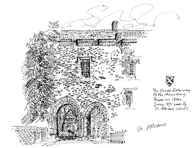 Swearing copiously I backed off but not long after found myself outside this 14th century gatehouse, now part of St. Albans School. So I worked off my fury on the sketching pad, my mutterings fading with the remains of the day.
